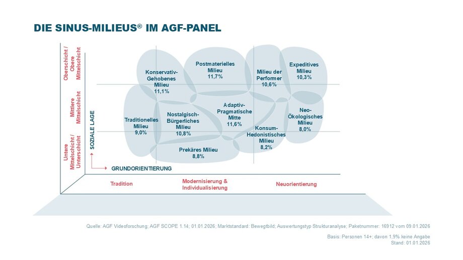 Um eine umfangreiche Zielgruppenanalyse zu ermöglichen, stellt die AGF auch Typologien bereit. Für die Marketing- und Kommunikationsbranche sind Typologien deshalb so relevant, weil sich die Unterschiedlichkeit von Lebensstilen häufig als differenzierender für Konsum- und Markenpräferenzen erweist als rein sozioökonomische Lebensbedingungen. Derzeit kooperiert die AGF dazu mit Sinus.