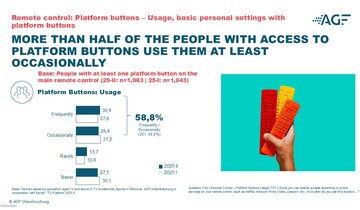 Frankfurt, January 21, 2026 – The television set remains the central screen in German households. At the same time, the results of the current AGF Platform Study 2025 II show that the structural framework of TV usage continues to change. New reception methods, internet-enabled devices, and evolving user interfaces are increasingly shaping access to video content - both in linear television and within the growing range of streaming services.