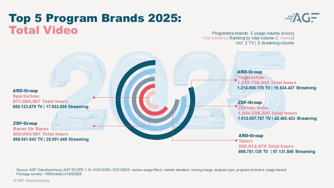 Source: AGF Videoforschung; AGF SCOPE 1.14; 01/01/2025–31/12/2025; various usage filters; Market Standard: Moving Image; analysis type: programme brand; usage-based; package no.: 16906 of 08/01/2026